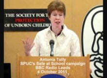 Antonia Tully, coordonatoarea activitaților programului „Safe at School” („In siguranță la școală”) din cadrul Societații pentru Protecția Copiilor Nenascuți (SPUC) cu sediul la Londra, va susține o conferință